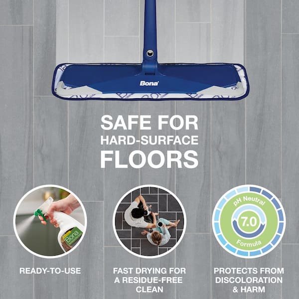 The quick and easy Bona Hard-Surface Floor Cleaner is made specifically for use on your hard-surface floors. Each Bona Floor Cleaner is uniquely formulated to care and protect your floor with it’s gentle, pH neutral formula. The rinse-free, streak-free formula cleans multi-surface floors by removing dust, dirt and grime leaving your floors clean and beautiful. Crafted with plant-derived ingredients and containing 92% USDA certified biobased content for a more sustainable cleaning experience. Available in Lemon Mint, a burst of fresh citrus verbena and Meyer lemon together with dew covered mint leaves and subtle floral aspects. Love your floors with Bona. Waterbased solutions and Safer Choice certification ensure a safer product for people, pets and the planet.