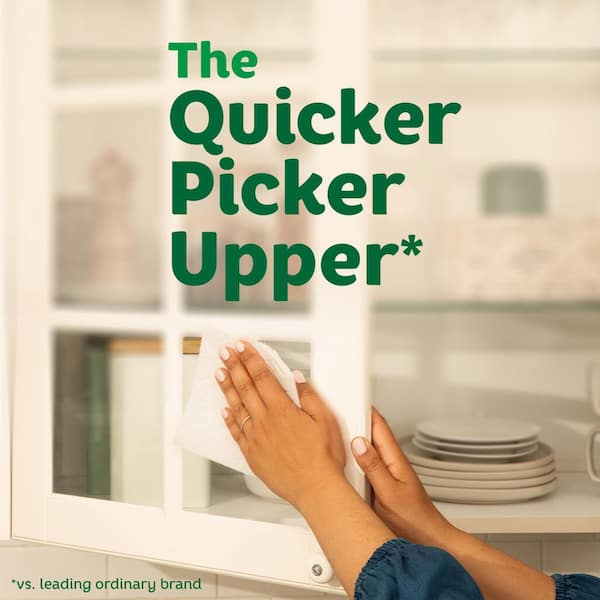 Spilled your drink. Quick. The Quicker Picker Upper. Be ready to tackle messes and spills with Bounty Paper Towels. Each sheet is 2x more absorbent, so you can use less and pick up spills and messes quicker than the leading ordinary brand. That’s why Bounty is the Quicker Picker Upper. Bounty Paper Towels are available in 2-sheet sizes, Full Sheet and Select-A-Size, so you can choose which option works best for you. Bounty Select-A-Size towels are versatile, so you can choose your sheet size depending on your mess. and if you’re buying the bigger packs, you’ll always have Bounty on hand. Bounty has a variety of pack and roll sizes to fit your needs. Bounty products are jobs and we’re fully committed to creating solutions for a sustainable future. Across all our products, we consider the impact on people, forests and the world. That’s why for every tree we use, at least 2 are regrown so you can conveniently and confidently clean messes in the kitchen and around the house knowing Bounty Paper Towels is helping to keep forests greener. Bounty always has your back in and out of the kitchen so whether it’s juice on the counter or ice cream on the table, we make sure spills won’t stand a chance. verses leading ordinary brand.