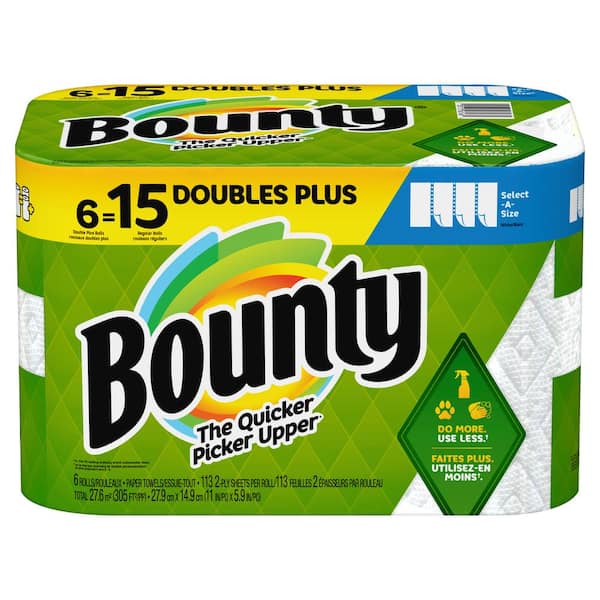Bounty White, Select-A-Size Paper Towels (6 Double Plus Rolls) 003077217718