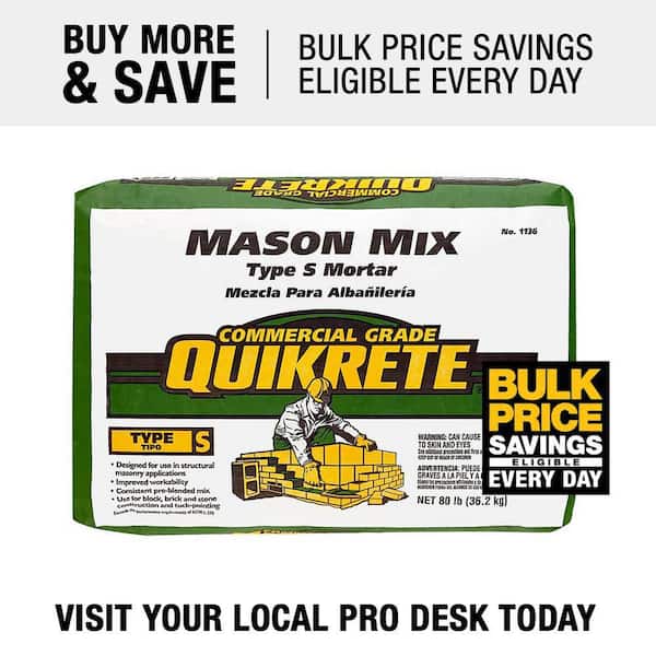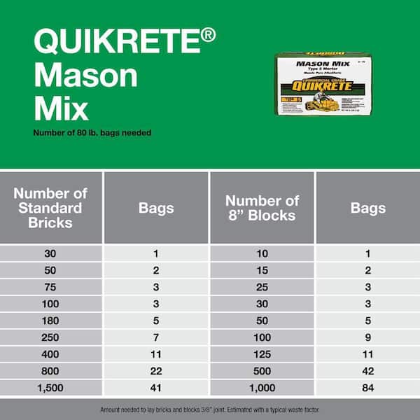 Quikrete 80 lb. Mason Mix is a commercial grade, high strength mortar mix containing properly graded masonry sand. It can be used to lay brick, block, and stone. Ideal for both structural and non-structural applications; above grade and below grade.