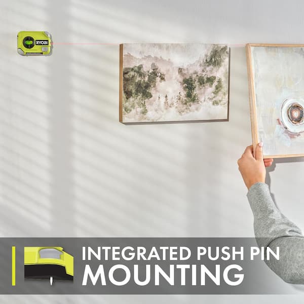 The RYOBI 15′ Compact Laser Level is a convenient, easy to use laser level that fits right in your pocket, tool bag or drawer for quick access. This red laser level has a 15′ range and (2) integrated push pins for wall mounting and hands-free leveling. Finally, the rotating bubble vial makes it easy to get an accurate read when leveling horizontally and vertically. This Laser Level is backed by the RYOBI 3-Year Manufacturer’s Warranty and includes the 15′ Compact Laser Level, (2) AAA Batteries and Operator’s Manual.