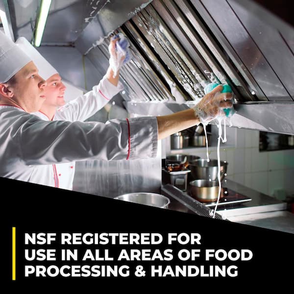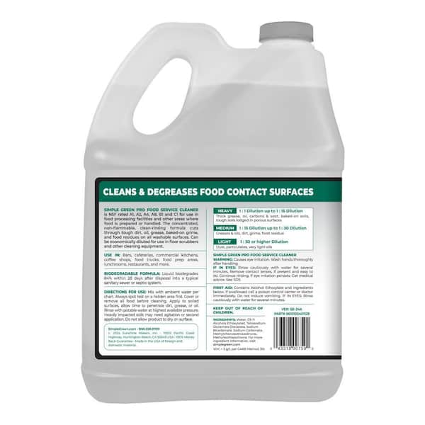 Simple Green PRO Food Service Cleaner is a powerful, professional-strength cleaner and degreaser that cuts through even tough baked-on foods, grease, and built-up grime without harsh chemicals. NSF registered A1, A2, A4, A8, B1 and C1 for use in commercial kitchens and other areas where food is prepared or handled. PRO Food Service Cleaner is the perfect choice for restaurants, bars, cafeterias, food trucks, bakeries, coffee shops, lunchrooms, and more. Works great on all washable surfaces including counters, walls, floors, appliances, cooking equipment, stoves, range hoods, utensils, and laundry. The clean-rinsing formula contains no added color or scent. Cost-effective concentrate can be diluted and used manually or in cleaning equipment.