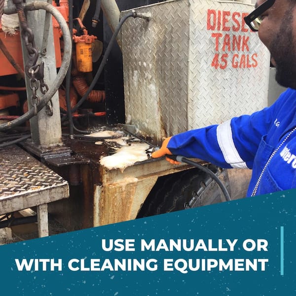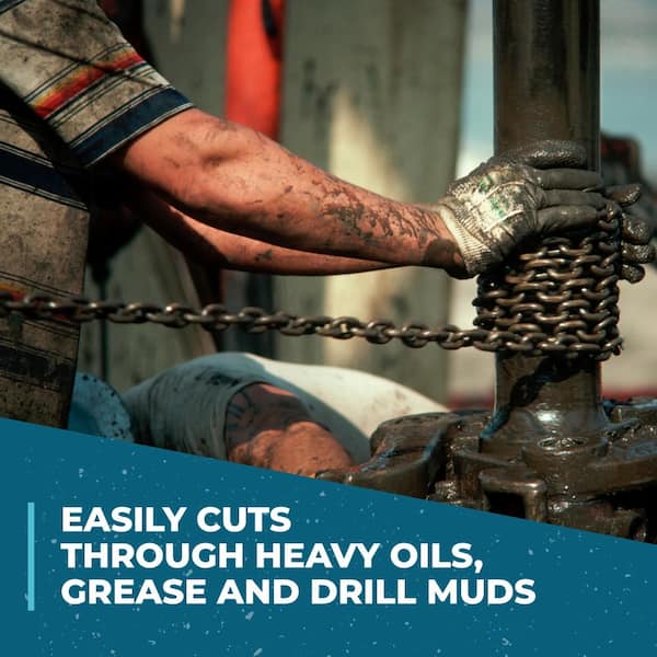 Rig Wash is a heavy-duty, concentrated formula that cleans and degreases without the harsh solvents commonly found in other products. The non-flammable, non-abrasive, and non-caustic formula cuts through the heavy oils, grease, and drill muds found in the petroleum industry, helping keep equipment and vehicles running at optimum levels. It allows for grease and oil to break back out of the solution, making it ideal for entry into oil/water separators and clarifier equipment. For use in on and off-shore drilling rigs, this powerful formula eliminates built-up grime and residue on pumps, pads and jacks, platforms, decks, derricks, liners, casings, crown and traveling blocks, and blowout preventers. It can also be used to maintain vehicles, equipment, engines and generators.