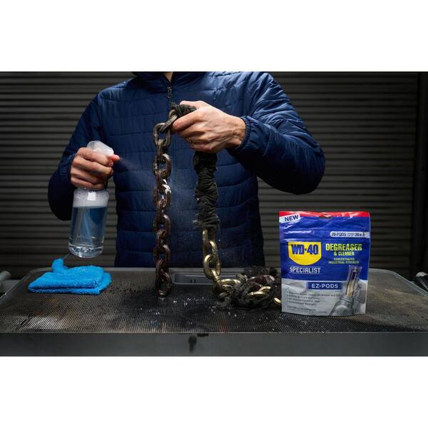 WD-40 SPECIALIST Degreaser and Cleaner EZ-PODS, with a concentrated, industrial-strength formula, are the newest and easiest way to customize cleaning strength to your needs – from sensitive surfaces to the toughest mess. For everyday degreasing jobs, simply drop 1 EZ-POD in 32 oz. of water in the container of your choice or add a second for even stronger degreasing power. Use on automotive parts, shop floors, industrial machinery, commercial appliances, even food processing equipment and facilities, for a variety of degreasing needs. They’re also safe to use on sensitive surfaces like plastics, rubber, neoprene, stainless steel, carbon fiber, copper, aluminum, chrome and painted areas. Perfect for on-the-go, EZ-PODS solve nearly all your degreasing needs from 1 convenient pouch. They’re compact, durable and ready to mix and go.